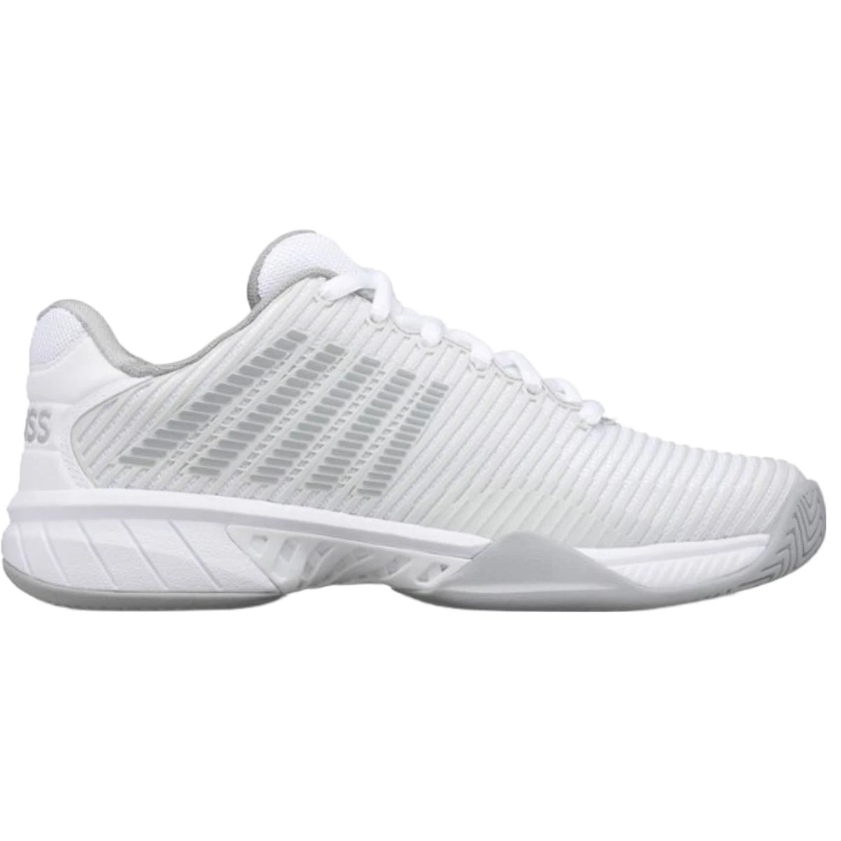 How does K-Swiss make its best-selling shoe model even better? By adding Surgelite midsole technology the Hypercourt Express 2 becomes even lighter and more comfortable while keeping its trademark breathability and generous fit. Additionally, the brand introduces Durawrap Flex, giving the shoe more support with no break-in period. The new upper design instantly makes the model fresh and modern looking which will impress current and new tennis players who wear the shoe. Ideal for hard court or clay court playing surfaces.