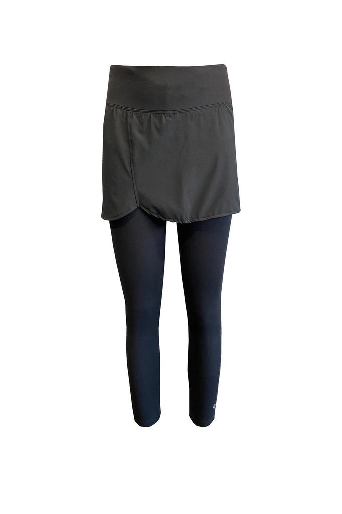 Fitted 3/4 length capri with 13″ length skirt overlay. The skirt is designed in a lightweight stretch woven for more breathability and comfort. The front of the skirt has a small curved slit for added detail. Tennis ball pockets located on both hips under the skirt.