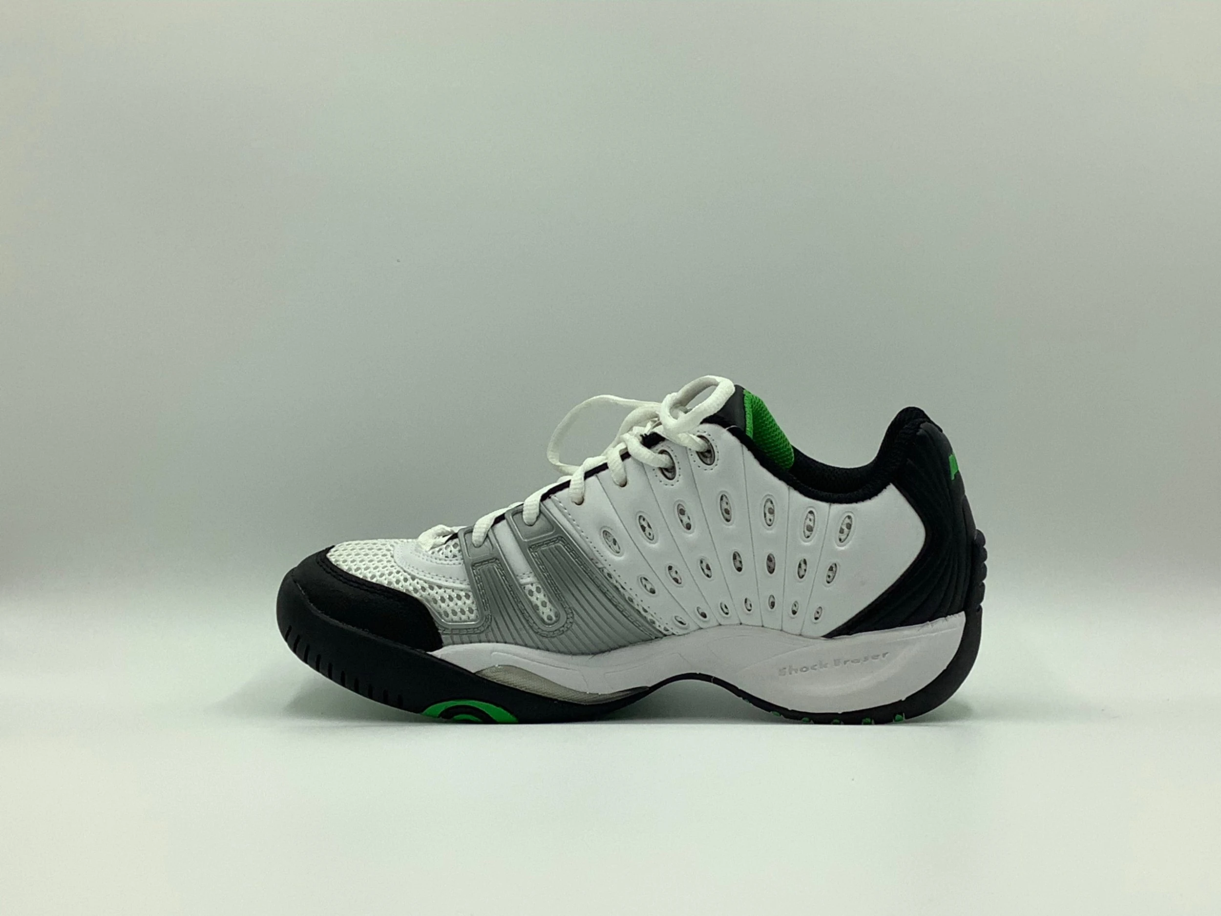 The poplular T-22 from Prince is back. A wide stable shoe with an upper that blends stability and breathability. Durable outsole and strategically placed iconic green and black trim round out Prince’s most popular shoe.