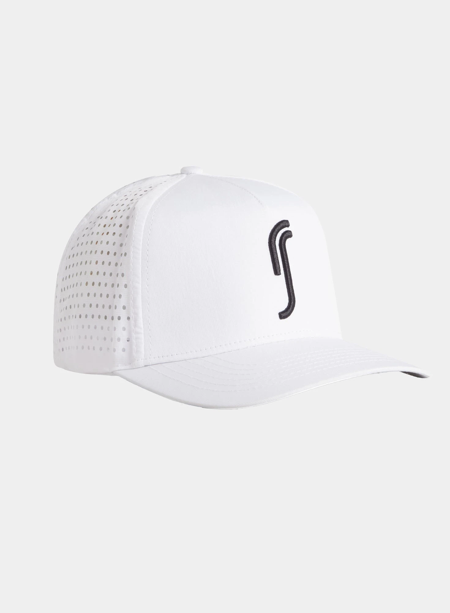 Classic trucker model cap with embroidered RS logo. This cap is constructed in performance fabric with laser perforations on the side and back panels to improve ventilation. Built-in sweatband and adjustable velcro strap for optimal fit and comfort. Perfect for the tennis court as well as the golf course.