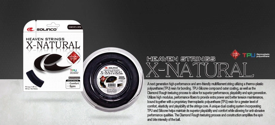 A next generation high peformance and arm friendly multi-filament tennis string that utilizes a thermo plastic poly urethane resin for bonding.