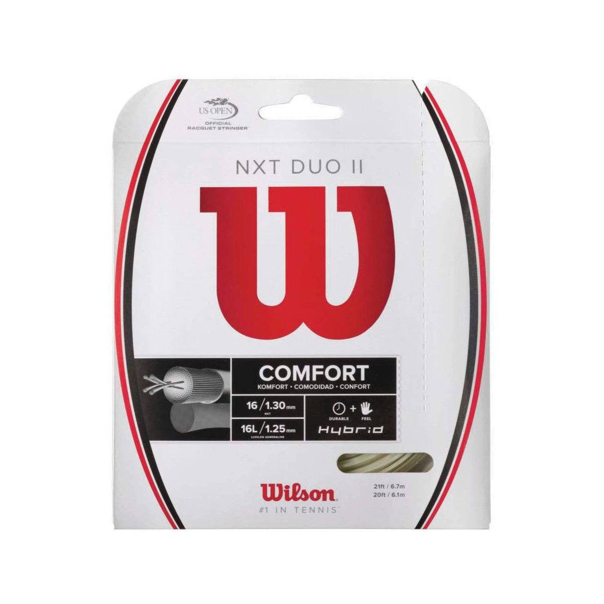 NXT Duo II combines Wilson’s NXT and Luxilon Adrenaline for a blend of crisp responsiveness and arm-friendly comfort. An update to the NXT Duo, this string upgrades from Enduro Pro to Luxilon Adrenaline. Either string can be featured in the mains, but Luxilon Adrenaline will provide more durability as opposed to the softer feel and spin with NXT.
